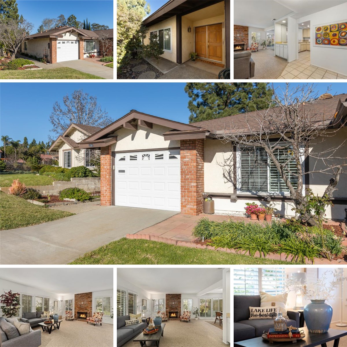 Experience the best of Southern California living in this beautifully maintained twinhome, perfectly situated on the 8th tee of the Links at Lakehouse executive course in the beautiful community of Country Greens in Lake San Marcos. Offering 2 bedrooms, 2 full baths, and 1,307 square feet of comfortable living space on a 4,500 square foot lot, this home combines resort-style amenities with everyday convenience. Step through the charming, landscaped entryway—complete with lemon, apricot and peach trees—and into a bright, inviting interior. Plantation shutters throughout add timeless elegance, while the cozy, brick fireplace creates a warm focal point for the living area. The freshly painted interior enhances the home’s airy feel, and the spacious primary suite features a huge en-suite bath and generous closet space. A convenient in-home washer and dryer make daily living effortless. Enjoy breathtaking views of the golf course right from your backyard—an ideal setting for morning coffee or evening relaxation. Residents of Country Greens enjoy access to a wealth of amenities, including a community pool, basketball court, tennis court, and clubhouse. The HOA includes the Lake and Lodge benefits so homeowners also receive access to pickleball and tennis courts, two additional pools, discounts on boat rentals and Lakehouse hotel stays, a billiards room, and more. With its stunning golf course views, resort-style amenities, and prime location near shopping, dining, and recreation, this little gem offers the perfect blend of comfort, style, and lifestyle. Welcome home to Lake San Marcos living at its finest!